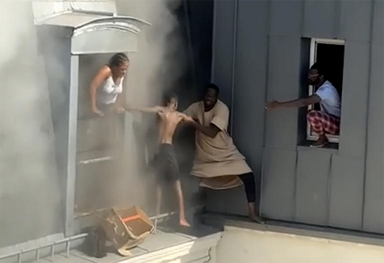 According to People, he first carried a 1-month-old baby, then a 1-year-old, and then helped two older children and two adults out of the burning apartment — all from that same perilous ledge.