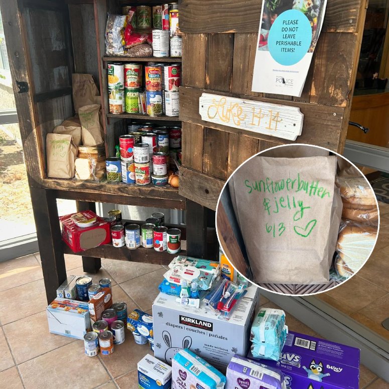 The box is stocked by everyday people — neighbors, passersby, volunteers. Some donate weekly, others when they can. It isn’t run by a big charity or city program — it’s fueled by compassion and a sense of responsibility for one another.